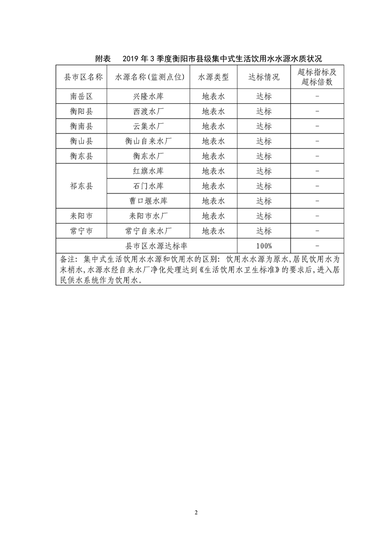 2019年3季度衡陽市縣級水源地水質(zhì)狀況報告